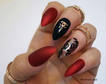 Witchy Black And Red Nails Long Coffin Red Acrylic Nails Red